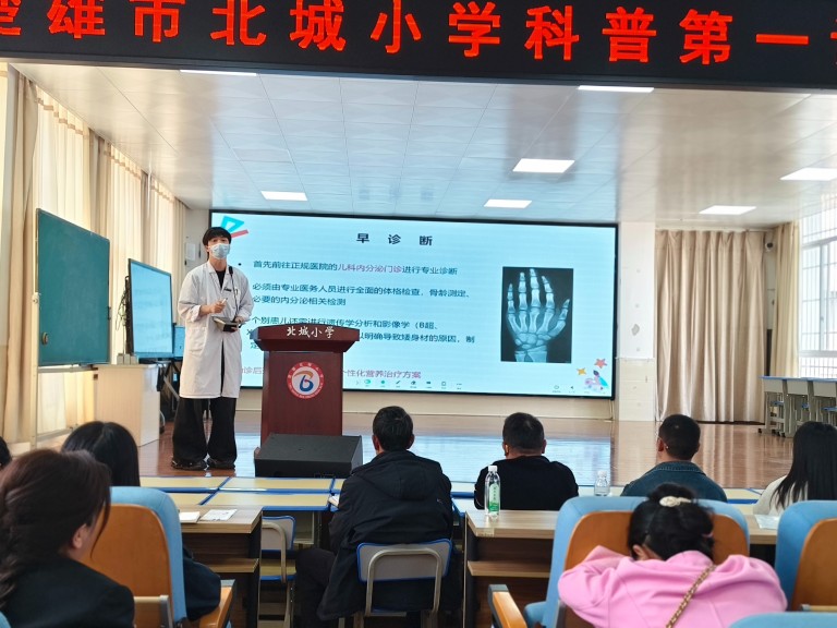 在家长科普课堂上,国家注册营养师、国家健康管理师、楚雄州人民医院营养医师邱恒逵以《生长发育》为主题,围绕着“成长的拦路虎——矮小、性早熟、肥胖”等内容,从身高社会现状、儿童正常生长发育及异常识别与防范,儿童生长发育标准解读,如何防范发育异常等方面为全体参会家长科普了最大程度开发孩子长高潜能的相关知识。并现场解答了家长们的问题,参加活动的家长表示受益匪浅。