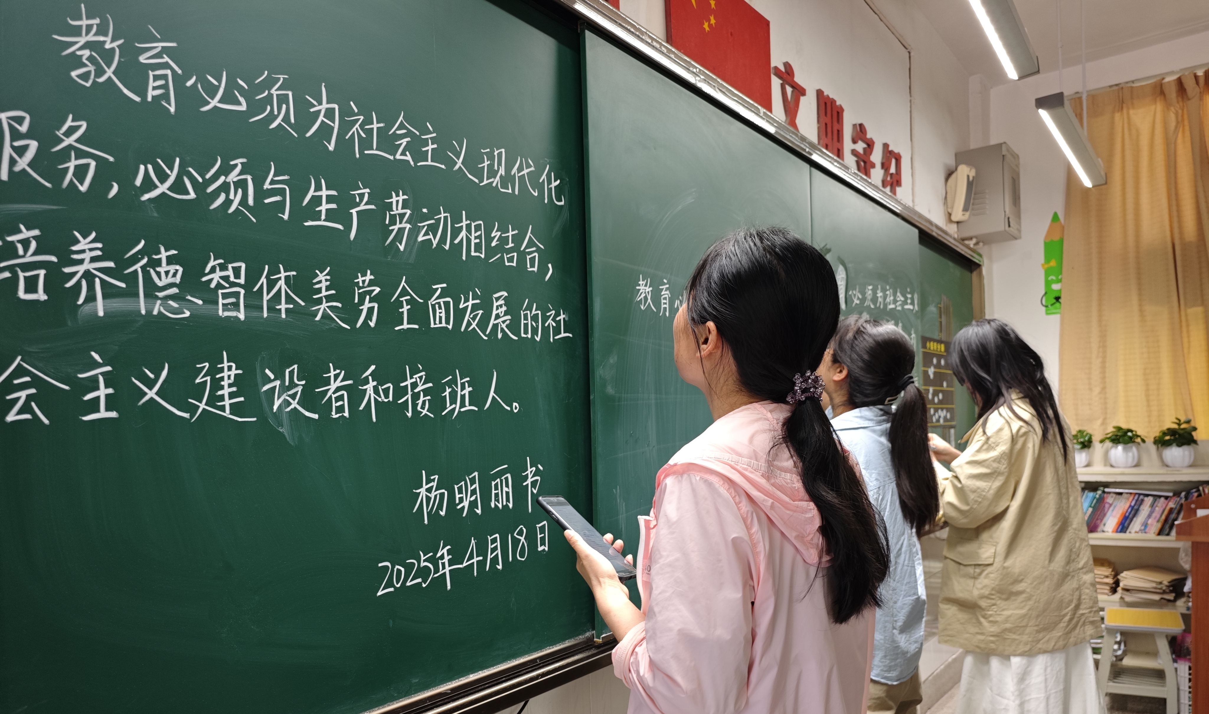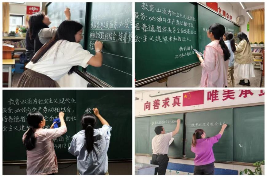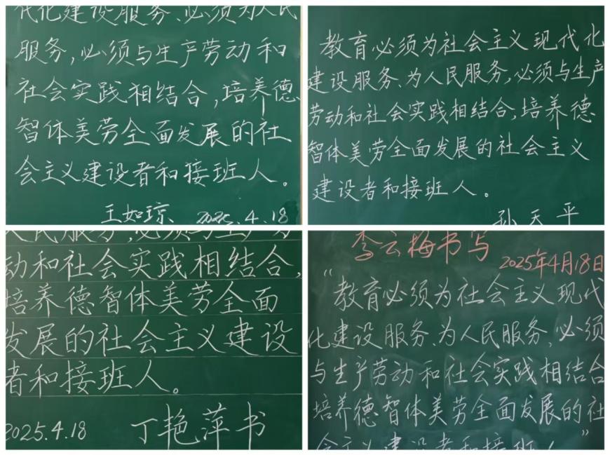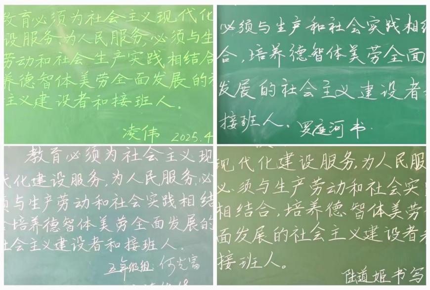 写好粉笔字是每一位教师应具备的基本职业技能,为了提升教师的专业素养,夯实教学基本功,营造墨香校园氛围,2025年4月18日,楚雄市北城小学成功举办了2025年教师全员专业素养提升“粉笔字比赛”,全体教师齐聚一堂,以笔为剑,在一方小黑板上展开了一场书法技艺的精彩角逐。