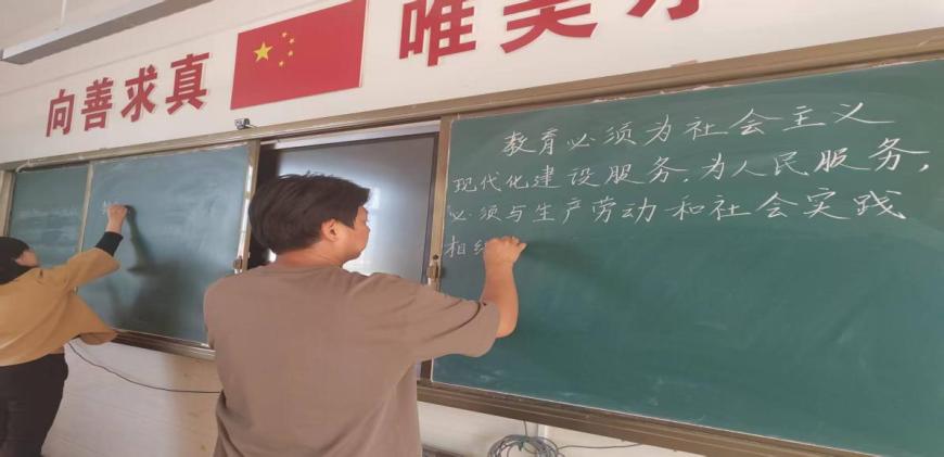 比赛现场,老师们个个全神贯注,屏气敛息。一笔一划,都凝聚着他们对书法艺术的执着追求和对教育事业的无限热爱。教师们用独特的书写风格展现出教育的智慧与魅力。一时间,教室里只有粉笔与黑板摩擦发出的沙沙声,仿佛是一首美妙的交响乐,奏响了教师们对传统文化传承的坚定决心。