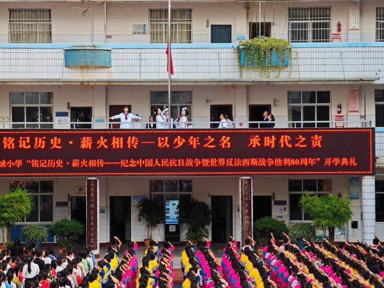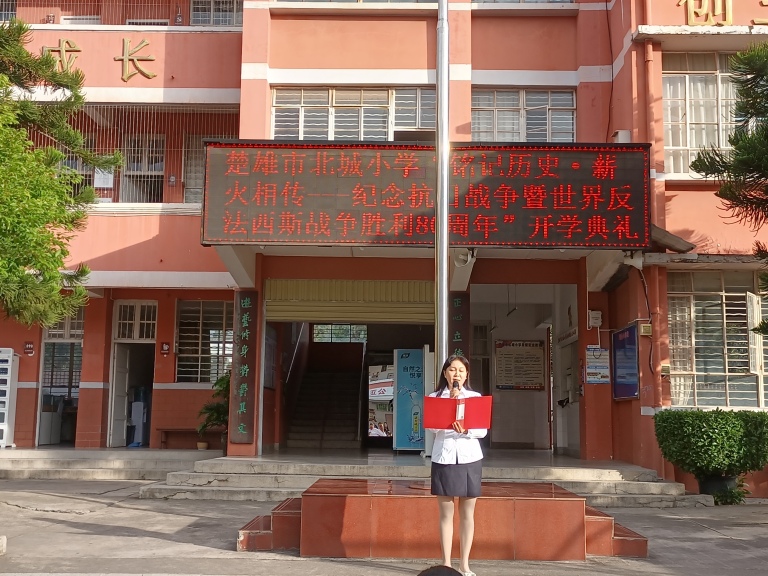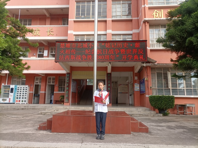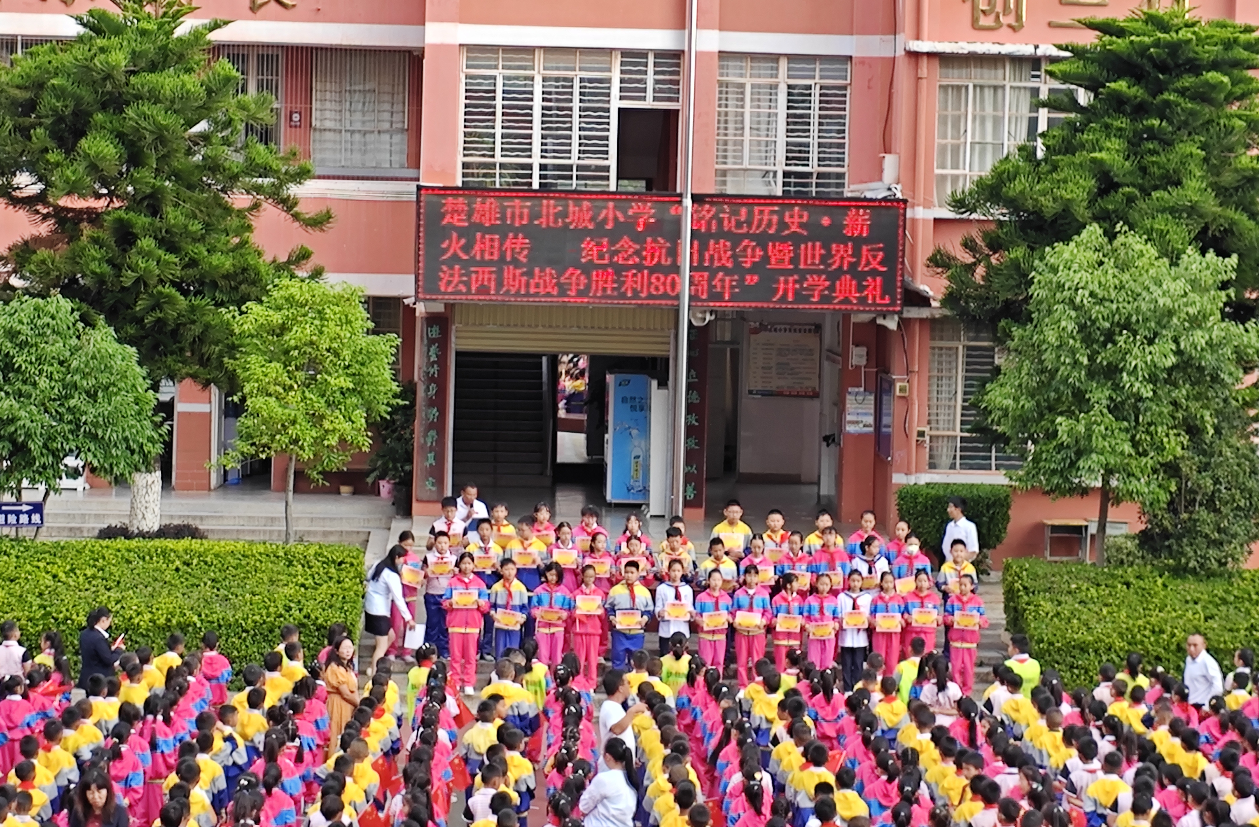 金秋九月,丹桂飘香,在这个充满希望与敬意的季节里,2025年9月3日上午楚雄市北城小学隆重举行以“铭记历史·薪火相传——以少年之名,承时代之责”的开学典礼主题活动,以此活动深情纪念抗日战争暨世界反法西斯战争胜利80周年,为新学期奏响昂扬奋进的序曲。