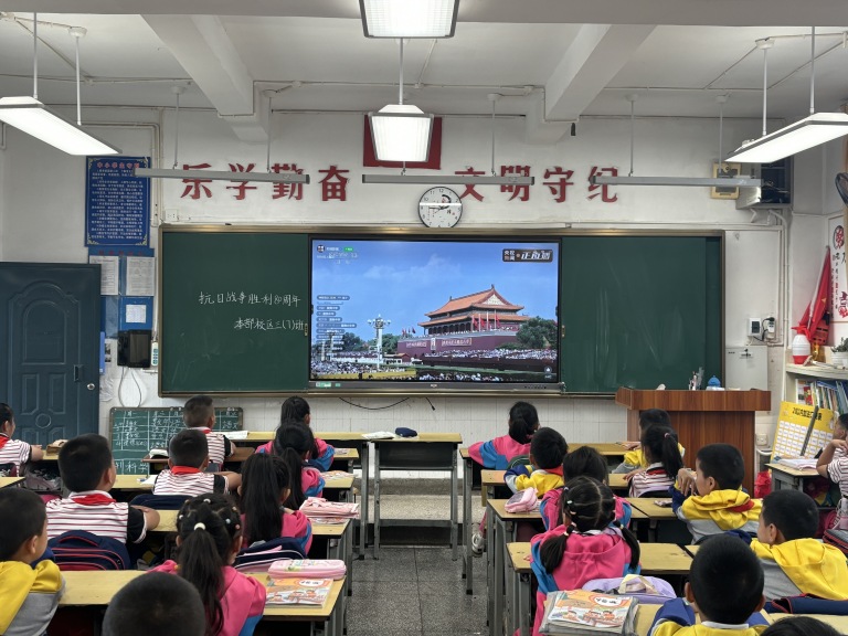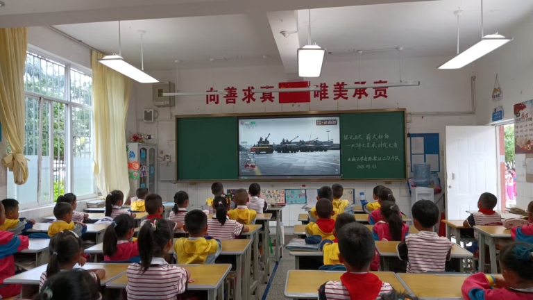 纪念大会上,习近平总书记的重要讲话铿锵有力,深刻阐释了伟大抗战精神的历史意义与时代价值,鲜明表达了中国人民铭记历史、缅怀先烈、珍爱和平、开创未来的坚定决心 。全体师生怀着无比崇敬和激动的心情观看了抗日战争暨世界反法西斯胜利80周年纪念大会 。当看到庄严的天安门广场上,五星红旗冉冉升起,听到激昂的国歌声响起,我的心中充满了自豪与感慨。