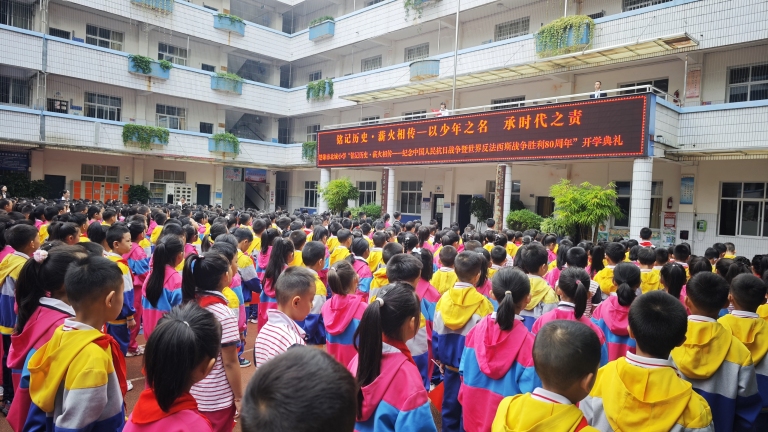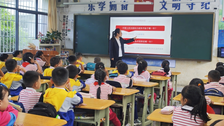 少先队员代声情并茂的为师生讲述了抗日战争中的英勇事迹和感人故事。从战火纷飞的战场到军民一心的抗争,一个个鲜活的故事仿佛将师生们带回到那段艰苦卓绝的岁月,使大家更直观地感受到了抗战精神的伟大,进一步激发了师生们传承和弘扬抗战精神的决心。