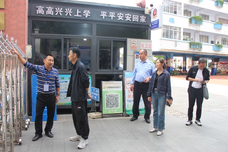 在校本部,何应明书记陪同督导组全方位查看校园环境,从运动场地到功能区域,细致了解校园基础设施的运维及文化建设情况。重点检查门卫室及安保系统,对人员值守、登记制度以及监控设备运行情况逐一进行核查,同时检查校园餐配送流程,确保食材运输环节安全可控;强调要时刻筑牢校园安全第一道防线。