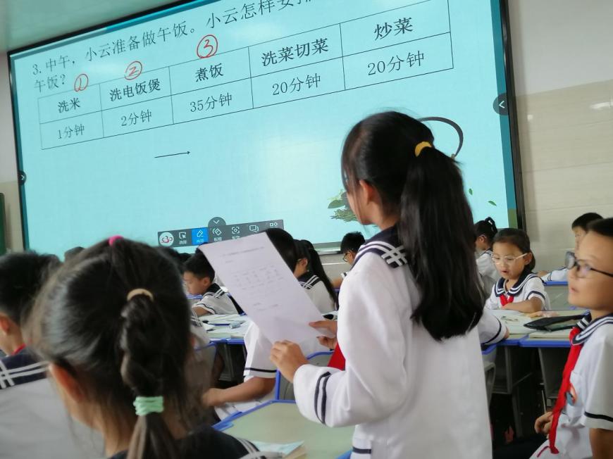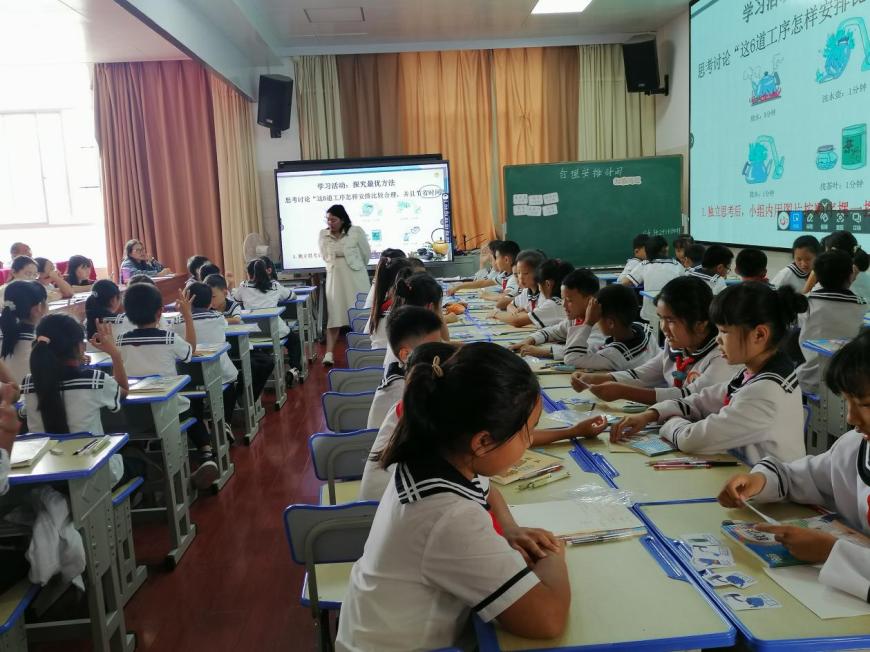 在9月23日举行的最终展示课上,课堂亮点纷呈。李秀丰老师以生动的情境导入,激发学生浓厚的学习兴趣。学生们在“怎样安排才能让客人尽快喝上茶”的驱动性问题下,积极思考、踊跃发言,通过流程图等直观方式清晰地展现了解决问题的思维过程。课堂不再是知识的单向灌输,而是变成了学生思维碰撞、合作探索的舞台,充分体现了“教师为主导,学生为主体”的教学理念。