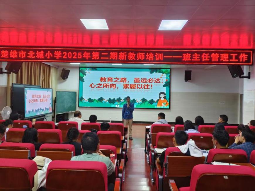 为助力新入职教师快速适应班主任岗位,提升教育教学与班级管理能力。2025年9月25日19:30,楚雄市北城小学第二期新入职教师培训如期举行。现场氛围温馨且专注。本次培训以“班主任经验分享与交流”为核心主题,特别邀请市级骨干教师、学校优秀班主任杨淑娟担任主讲人。开场寄语中“在温暖时光中守教育初心,倾听、重视孩子,伴其成长”的理念,为培训奠定了温暖而务实的基调。活动过程中,新教师们全程全神贯注,或凝神聆听汲取经验,或提笔记录关键要点,深度沉浸于“成为有温度、懂孩子的引路人”的思考与学习中,就此开启了“奔赴山海,不负热爱”的教育新征程。