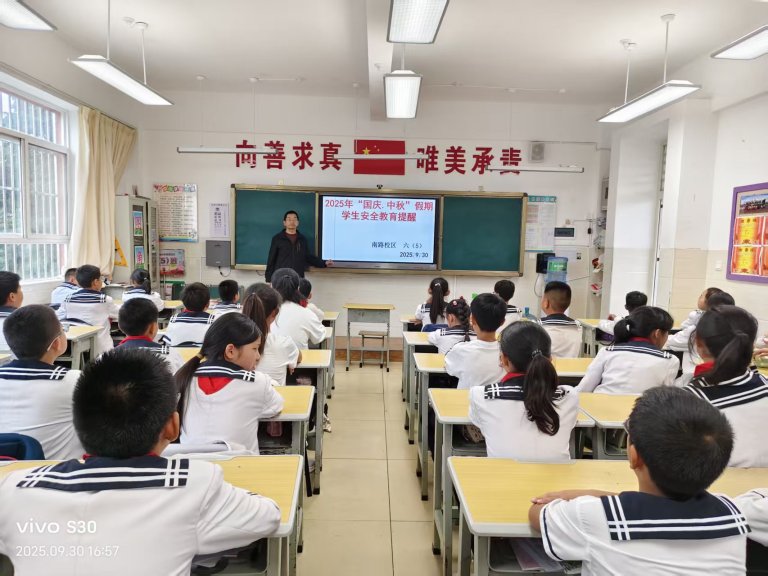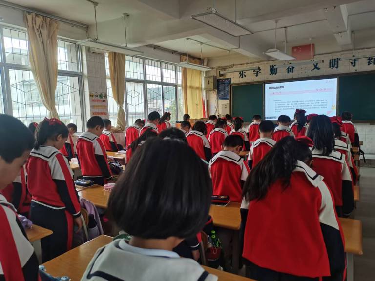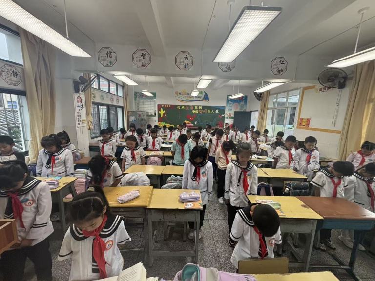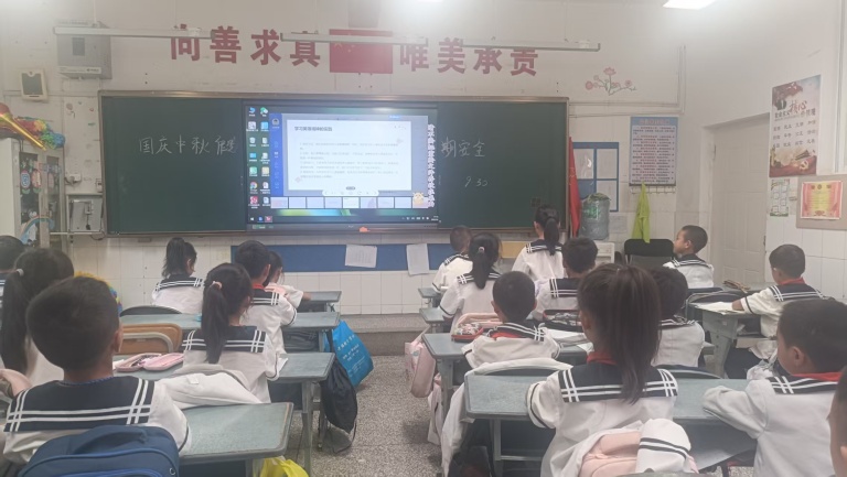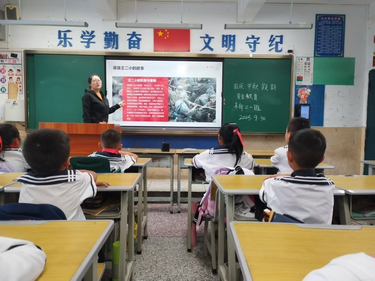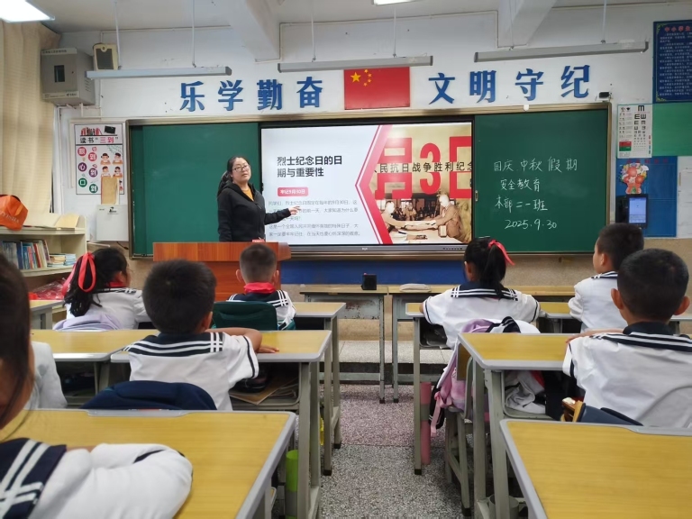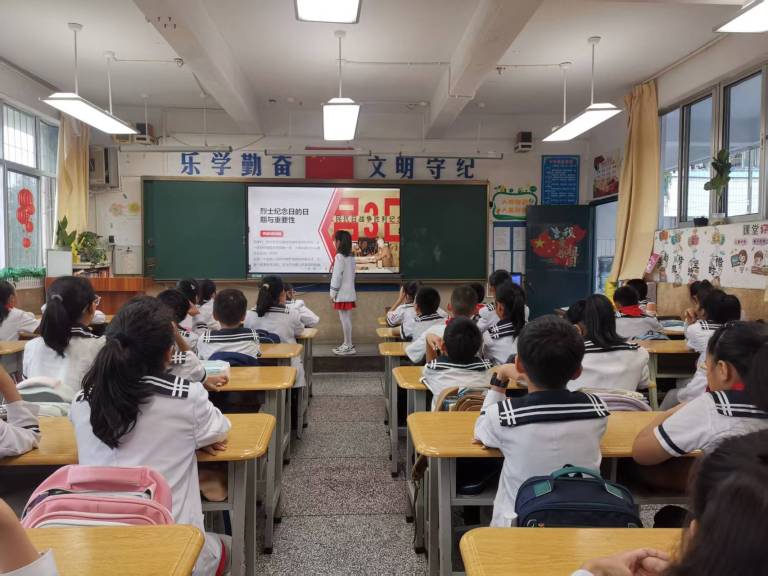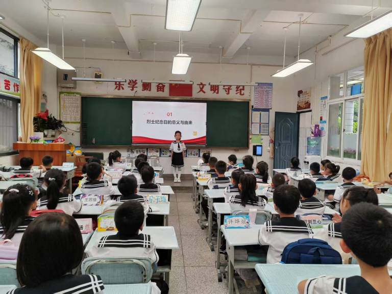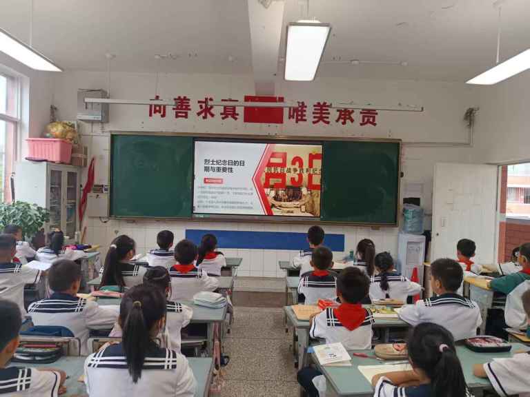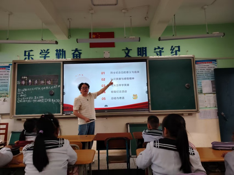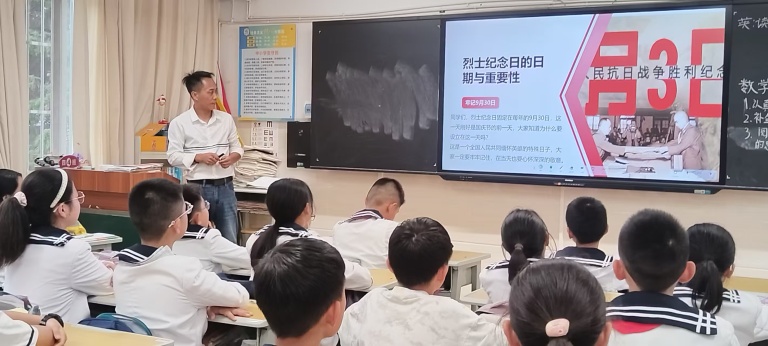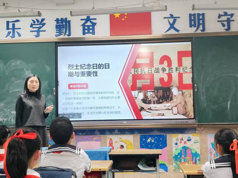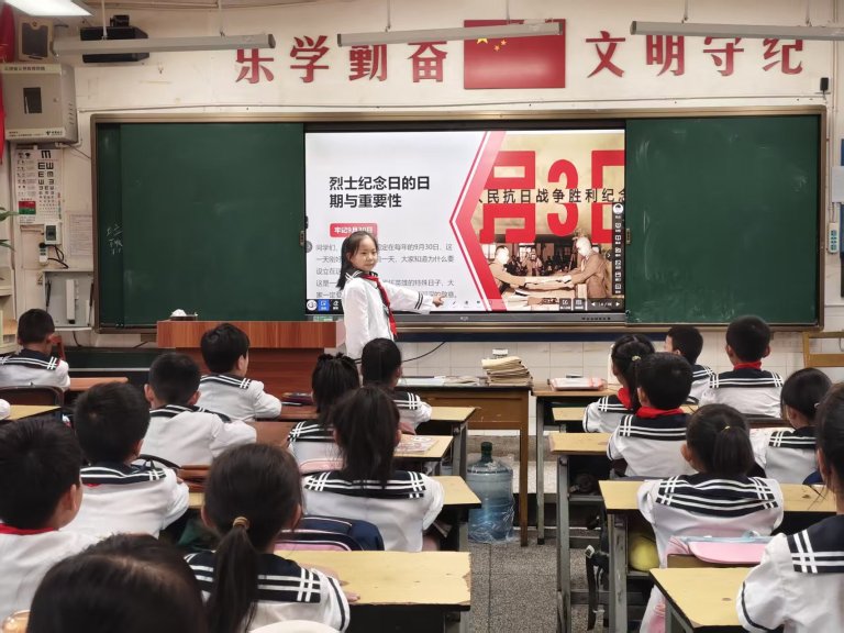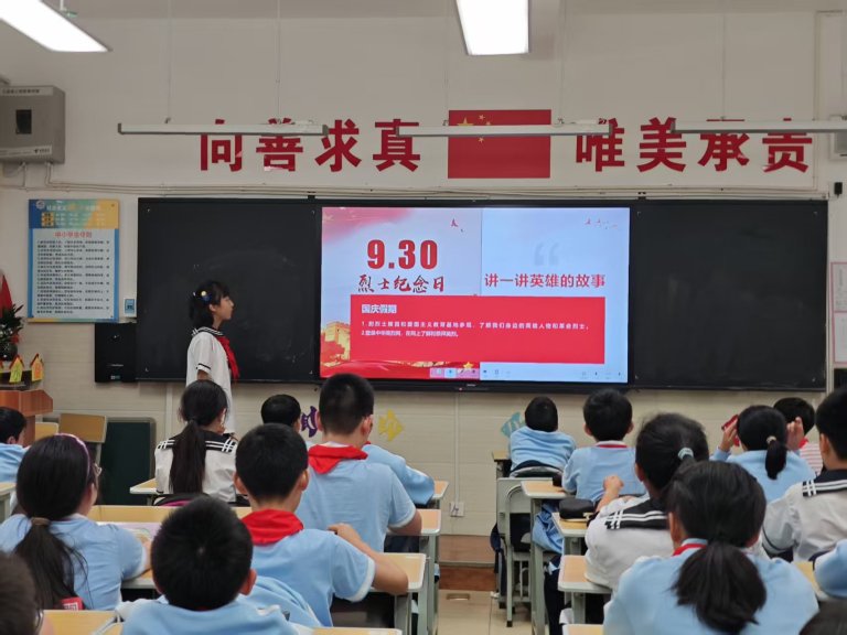 活动最后,全班同学齐声诵读:“纪念日是9月30日,英雄把和平送给我们,我们把敬意记在心里。”嘹亮的声音中饱含着对英烈的无限崇敬;激昂的少先队队歌响起,孩子们挺直胸膛、放声歌唱,将对英雄的崇敬与缅怀,化作了自己成长路上源源不断的动力。