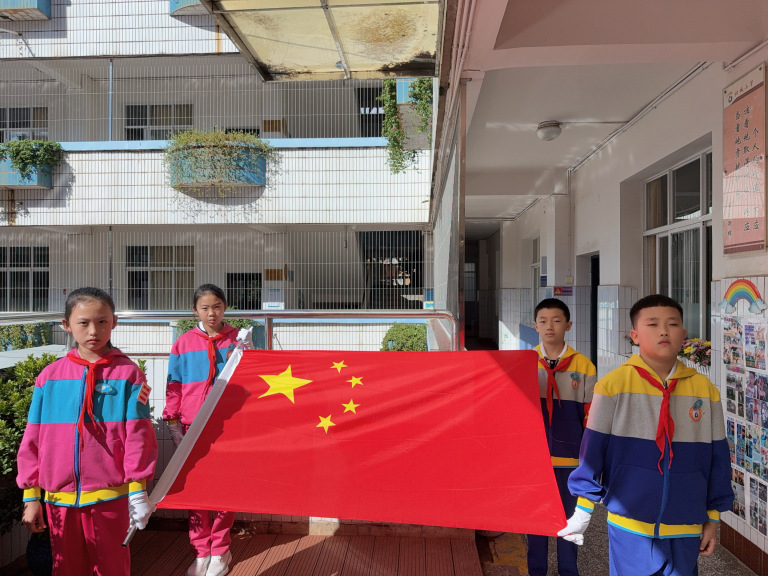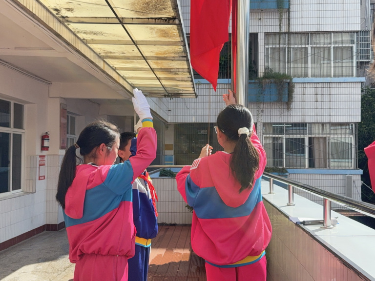 升旗手与朝会主持人合影