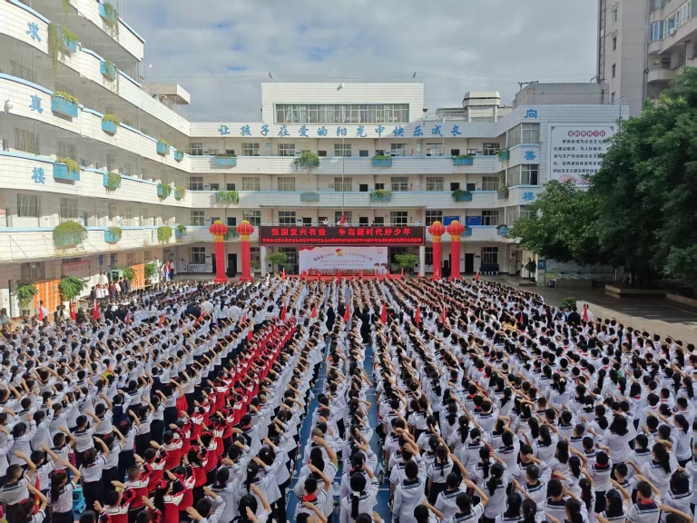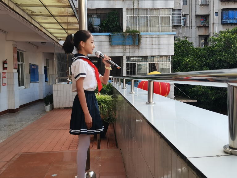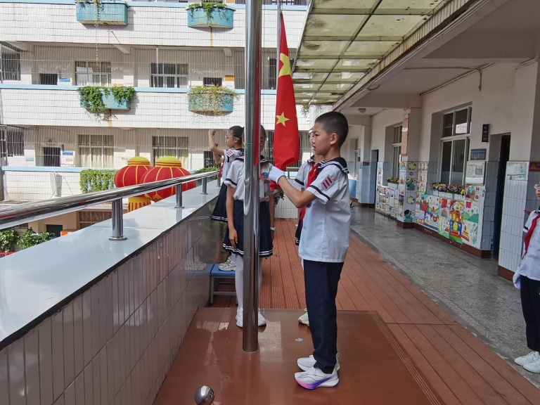Hello everyone! I'm Su Shihan from class 3, Grade 5. Today, standing here as the flag-bearer, my heart is filled with pride.