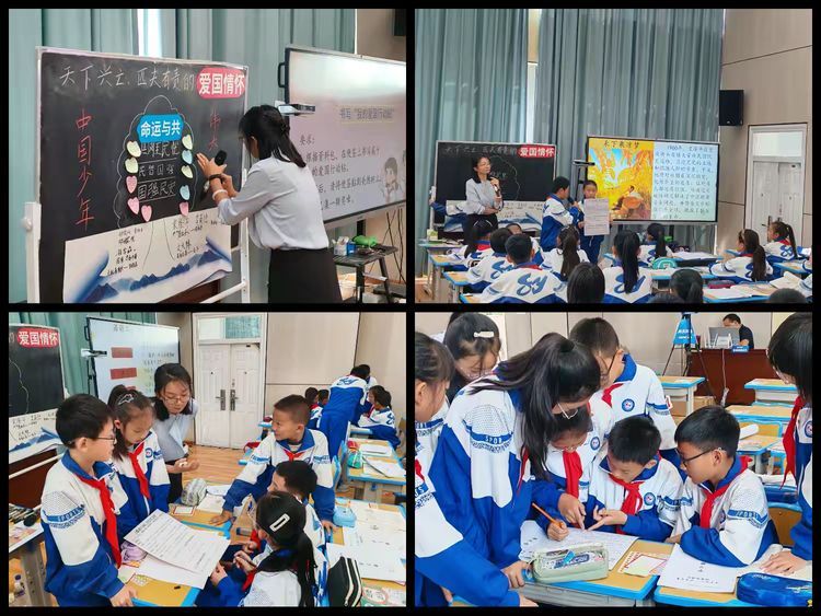 陆道姬老师呈现的这堂展示课,生动且富有深度。课堂上,学生或专注聆听老师讲授,或围绕 “天下兴亡 匹夫有责 爱国情怀” 的主题积极互动;老师借助板书、多媒体等多种形式,引导学生深入思考“中国少年”的责任与担当,同学们在小组合作中热烈探讨、认真书写,让爱国情怀在生动的课堂氛围中深深植根于心间。