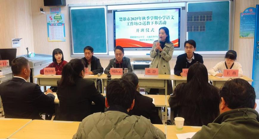 2025年10月29日,楚雄市小学语文工作坊(2)在楚雄市教科所副所长周汝云、坊主——北城小学张静老师的带领下,成员杨淑娟老师、王燕老师,一同前往新村镇中心小学开展为期两天的新村镇与大地基中心小学联片送教下乡活动。参加本次活动有:送教团队,新村镇中心小学领导班子成员、新村镇中心小学21名语文教师,大地基乡中心小学马银强副校长、教科室张太斌主任及17名语文教师。