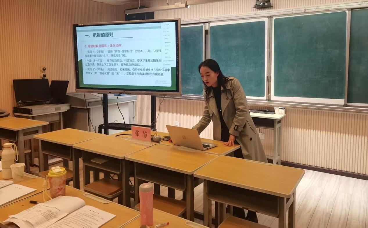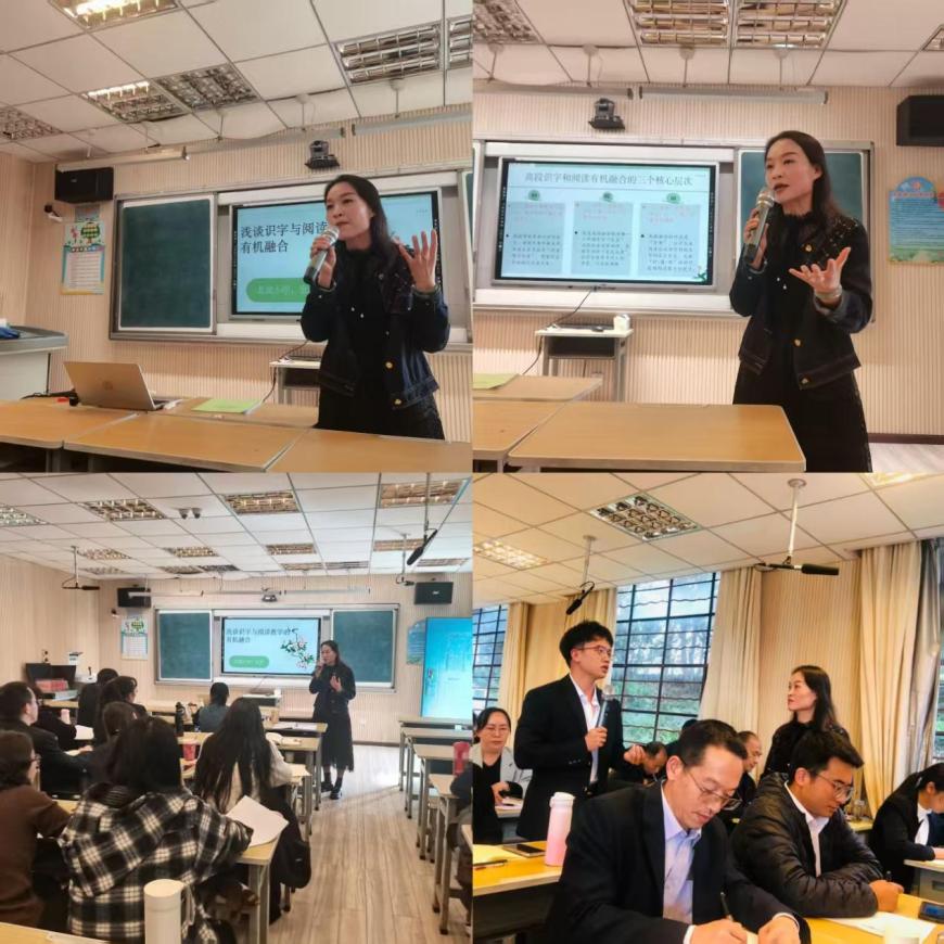 拨云见日使得意,一树梅花一树春。识字和阅读教学是小学语文教学的重要组成部分,如何处理好识字和阅读教学的关系对语文教学至关重要。坊主张静老师通过“浅谈识字和阅读教学的有机结合”专题讲座,对老师们在开展识字和阅读教学上提供了方法和指导建议。张老师在讲座中为我们梳理了小学语文识字与阅读的关系、怎样处理好不同学段识字和阅读的关系、低段、高段识字和阅读有机融合的三个层次、识字和阅读教学的有机结合的策略,在讲座中张老师列举《池上》、《麻雀》教学实例,让教学有据可循。张老师深入浅出的讲解好似拨云见日,让我们对如何有效开展小学语文课中识字和阅读教学的有机结合有了更清晰的认识。
