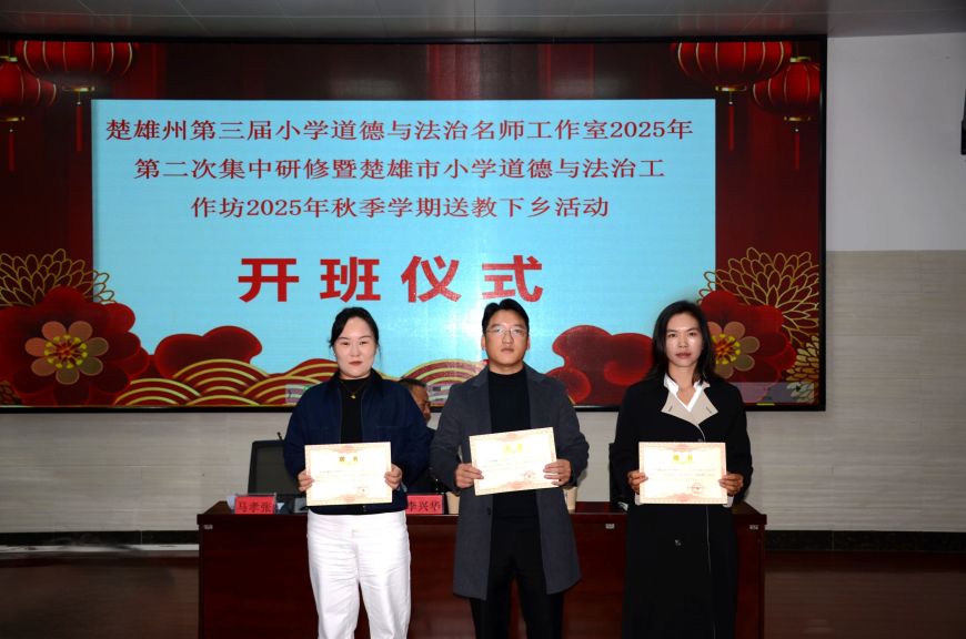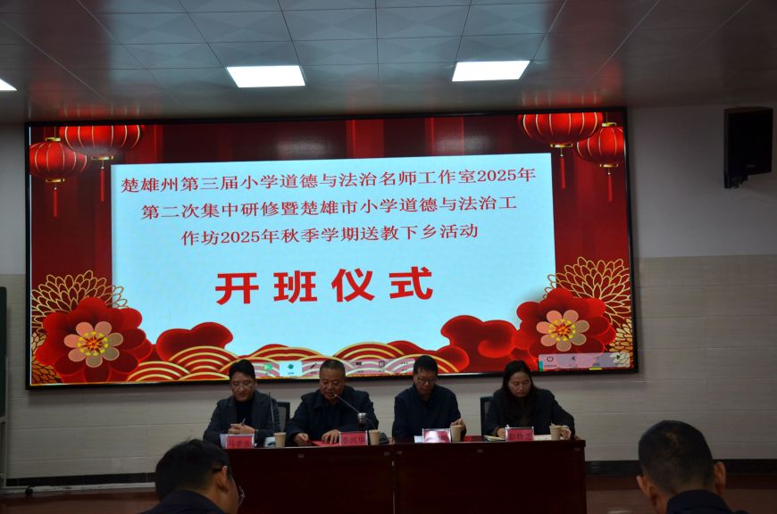 活动在庄严热烈的开班仪式中拉开帷幕。楚雄州教育体育局教育科学研究所邓建明副所长讲话,既全面剖析了工作室的运行成效与优势,更寄语团队持续发挥引领效能,以专业力量推动道德与法治教育高质量发展。