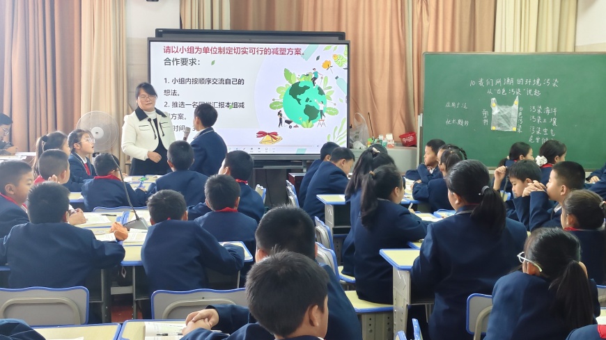 大姚县李秀芝老师执教四年级上册《从白色污染说起》,结合生活实例探讨环境问题的成因与对策。