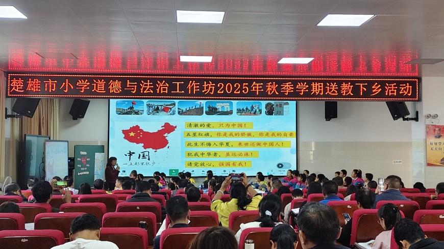 为推动楚雄州小学道德与法治教育向纵深深耕,提升教师学科素养与课堂实效,锚定“立德树人”根本任务,2025年11月6日至7日,楚雄州第三届小学道德与法治名师工作室2025年第二次集中研修暨楚雄市小学道德与法治工作坊2025年秋季学期送教下乡活动在楚雄市北城小学南路校区举行。