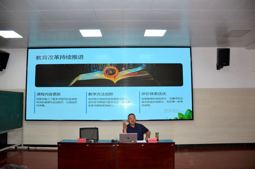 11月7日下午,李兴华校长带来“道德与法治新教材培训”专题讲座。他围绕“培训背景、新课标解读、课程核心内容、新教材变与质、教学策略与方法、教师专业成长”六大维度,既提纲挈领厘清核心逻辑,又以鲜活案例深度剖析落地路径,句句切中教学痛点,引发全场教师的共鸣与深思。