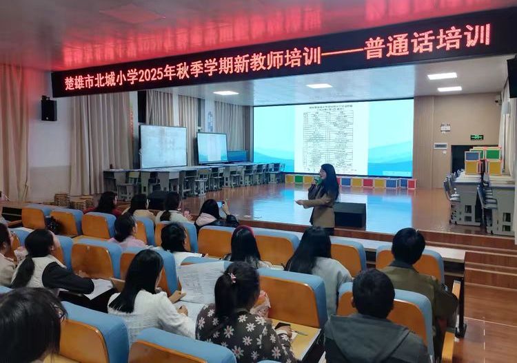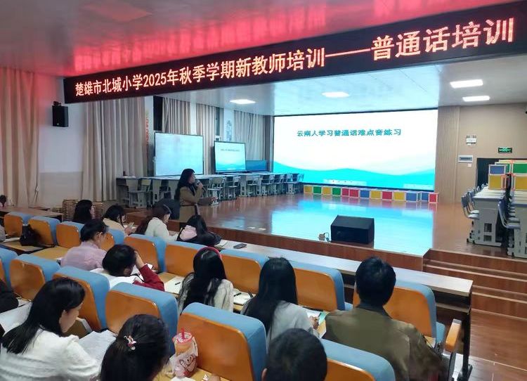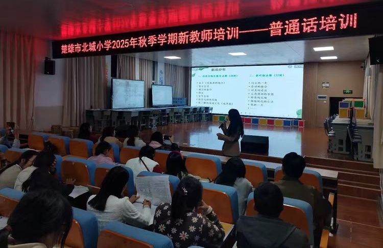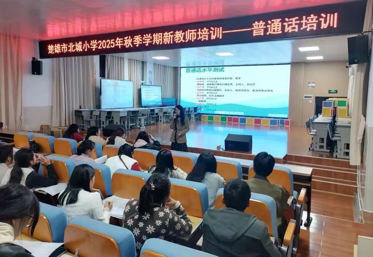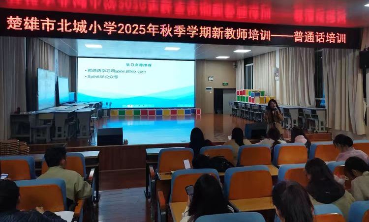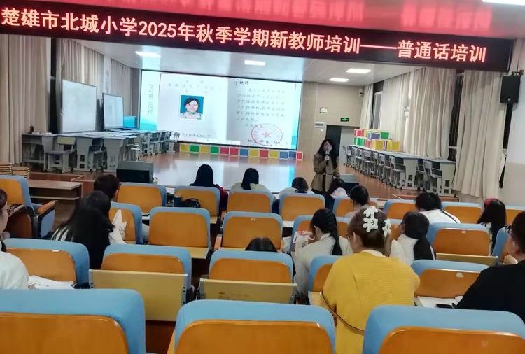 为助力新教师提升语言文字应用能力,夯实教育教学基本功,尽快适应角色,提升专业素养。2025年11月6日,楚雄市北城小学开展了2025年秋季学期第七期新教师培训,主题是“普通话培训”。本次培训由学校教科室主任、资深国家级普通话测试员丁艳萍老师主讲,为新教师成长注入语言力量。
