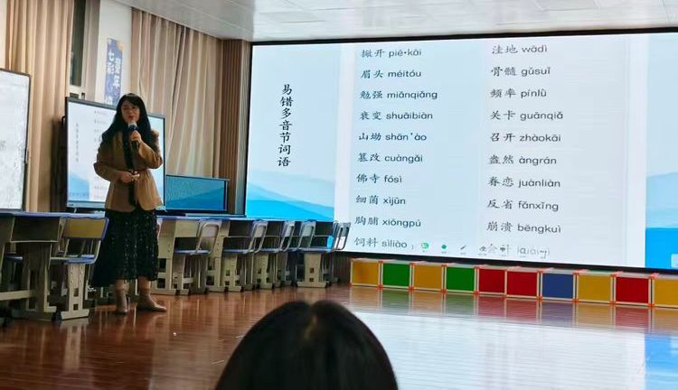 培训中,丁艳萍主任结合丰富的教学与测试经验,从六个维度展开精彩分享,为新教师提供专业指导。她围绕“我的普通话故事”“普通话水平测试”“怎样学好普通话”“普通话学习资源推荐”“云南普通话特色”“易错多音节词语指导”六个方面展开,内容实用、针对性强,助力新教师提升普通话水平,夯实教学基础。