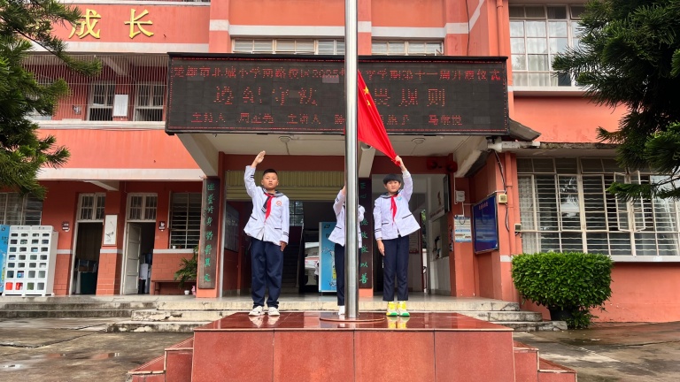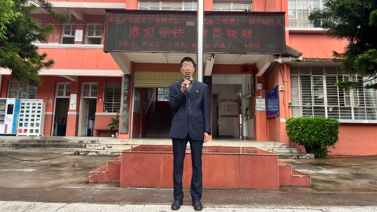 今天,我国旗下讲话的题目是《遵纪守法,敬畏规则——让安全与文明之花盛开在校园》。每天走进校园,我们都会感受到家的温暖。但我们也应该知道,我们的这个家有一个特点:场地小,同学多,台阶也多。这本是我们熟悉的地方,但如果不讲规则,它就可能隐藏危险。所以,“遵纪守法,敬畏规则”对我们来说,不仅仅是一句空洞的口号,更是保护每个人的“护身符”。