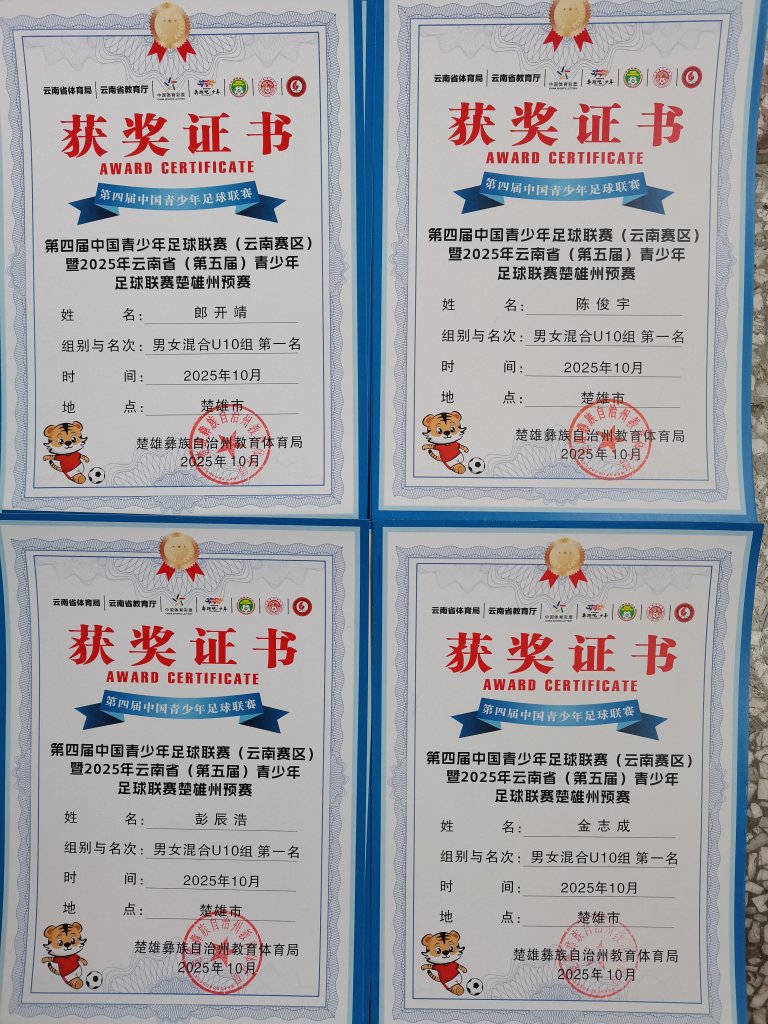 表彰楚雄市北城小学在第十届青少年足球联赛(云南赛区)暨2025年云南省(第五届)青少年足球联赛楚雄州预赛中取得的优异成绩。