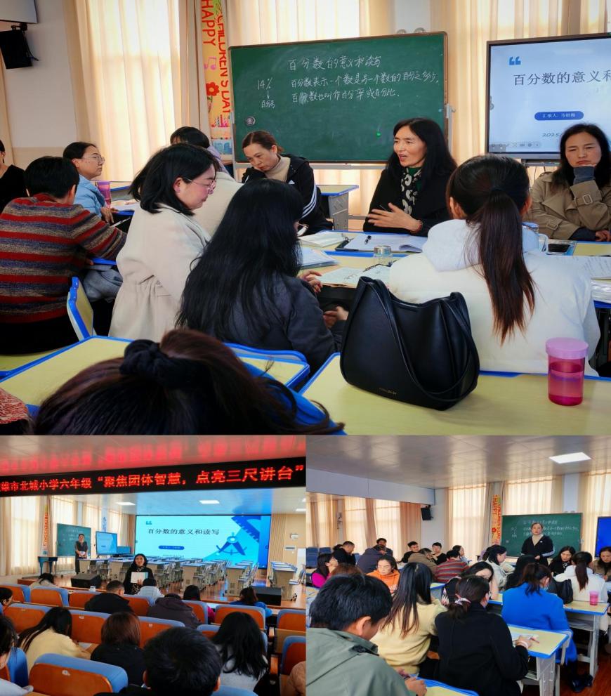 初冬微寒,研思暖校。为深化课堂教学改革,助推教师专业素养提升,2025年11月18日下午,我校全体数学教师齐聚本部报告厅,以“聚焦团体智慧,点亮三尺讲台”为主题,开展了一场扎实高效的教学研讨活动。本次活动以六年级数学教研组杨晓艳老师的《百分数的认识》为核心课例,聚焦基础概念教学的突破与创新,探索生活化、情境化课堂中数学核心素养的培育路径,既为授课教师搭建了展示自我的平台,更让全体教师在观课、议课中碰撞思维,共寻百分数教学的高效方法。