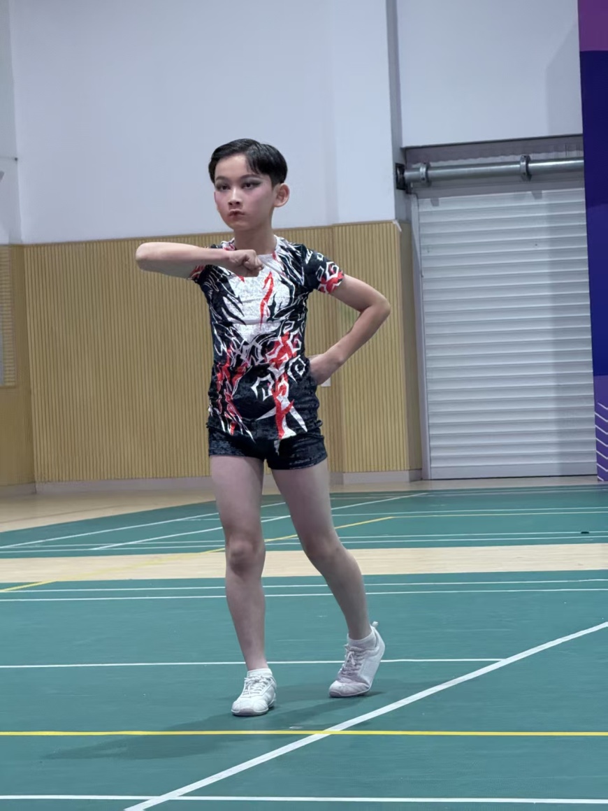 小学甲组男子个人竞技健美操赛场上,选手们斗志昂扬,动作兼具力量与美感,充分展现出少年的活力,最终脱颖而出,荣获该组别第一名。