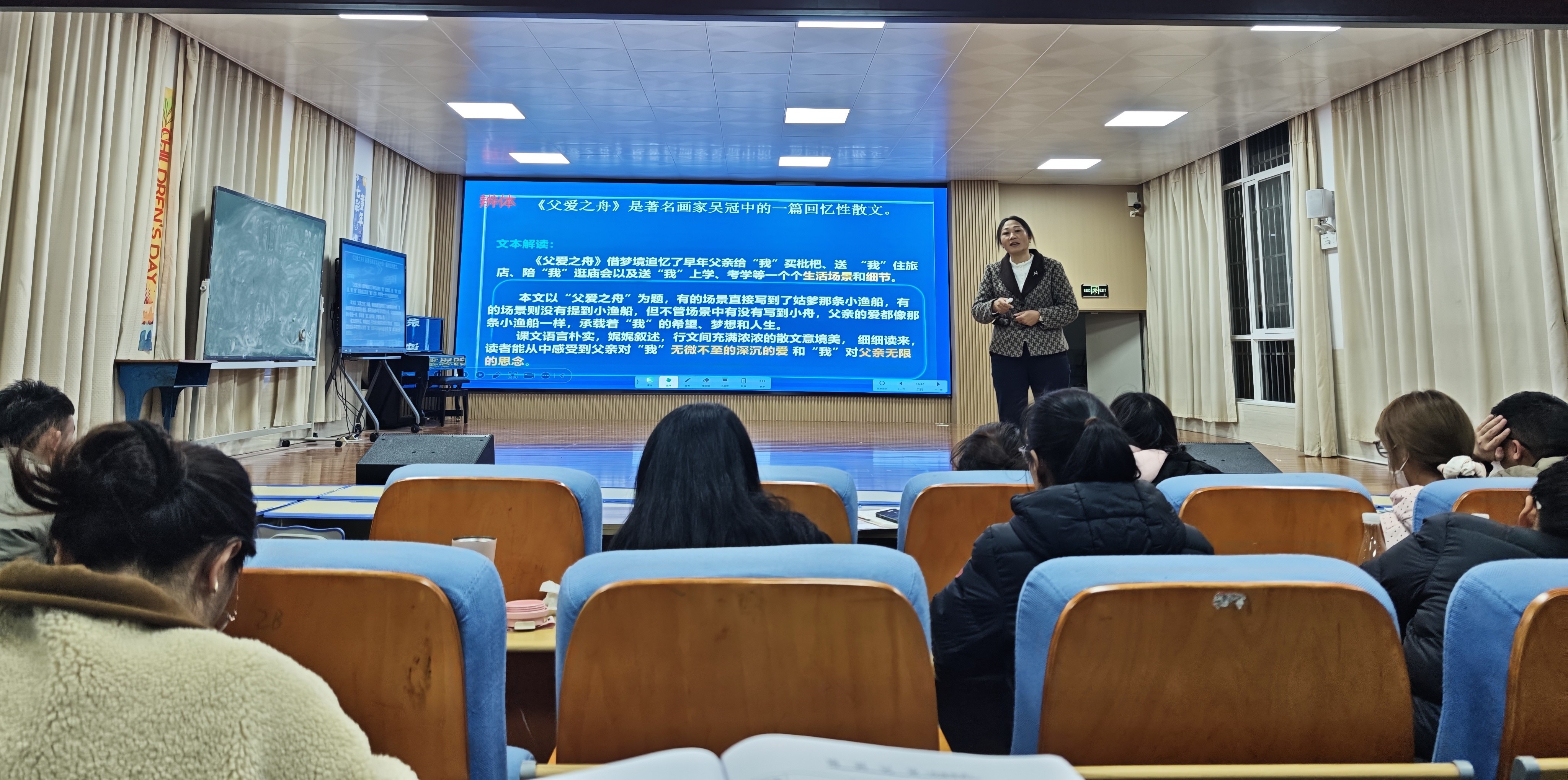 培训中,王灿珍老师以小学语文《父爱之舟》为例,进行了全程式备课示范。从“辨体(明确文本体裁与特点)—归类(对标课标学习任务群)—聚焦(拆解单元语文要素)—定点(细化课时素养目标)”的目标锚定,到分层教学目标设计(第一课时抓场景、品细节,第二课时练表达、悟主旨),再到补写“买枇杷”场景的实践活动设计,完整呈现了素养型备课的思考路径。同时结合数学“图形的拼组”、美术“树叶贴画”等跨学科案例,让抽象的备课逻辑变得直观可学。