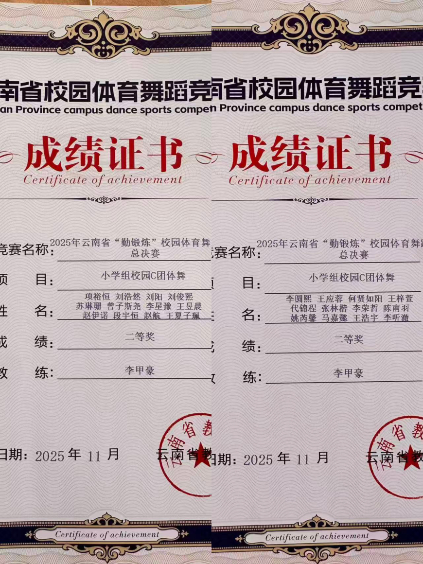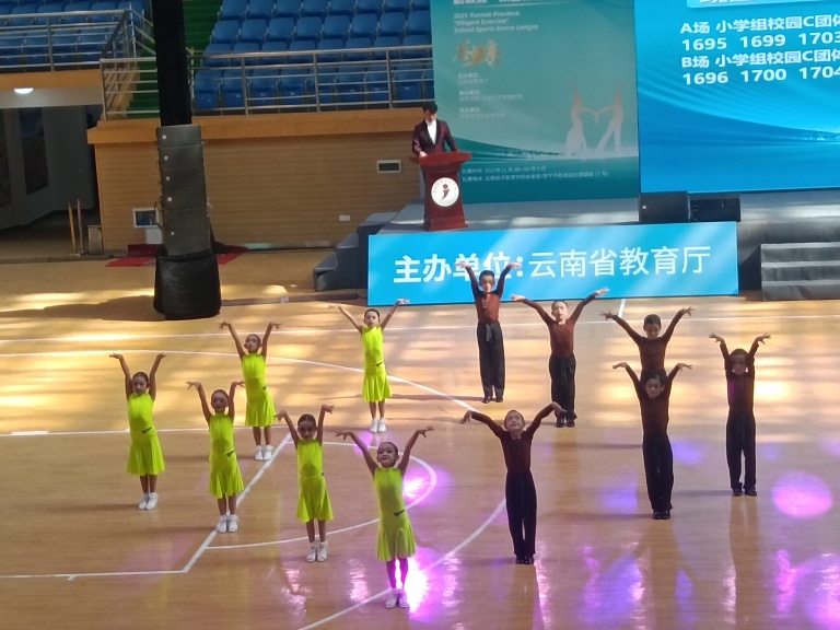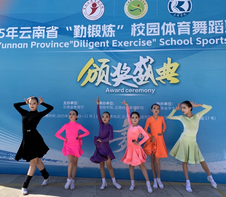 比赛中,学校先组织60名学生线上完成《别看我只是一只羊》恰恰舞集体录制,灵动的舞姿尽显童真活力;随后从中择优选拔24人组成线下团队,奔赴昆明安宁赛场展现默契协作与扎实功底。