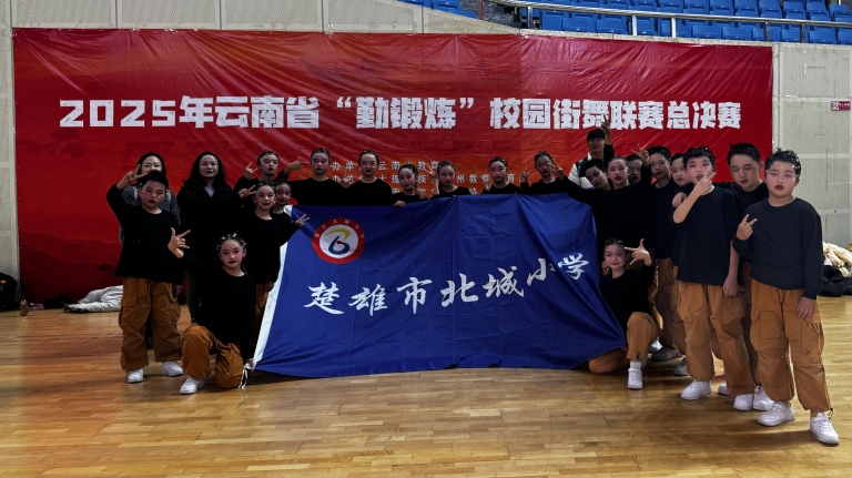 12 月 4 日,2025 年 云南省“勤锻炼” 校园街舞联赛总决赛在大理拉开帷幕。楚雄市北城小学春雨街舞队的 20 名队员,奔赴赛场与全省上千名青少年街舞选手同台竞技,经过23支街舞队的激烈角逐,楚雄市北城小学春雨街舞队在小学组齐舞比赛中荣获三等奖。