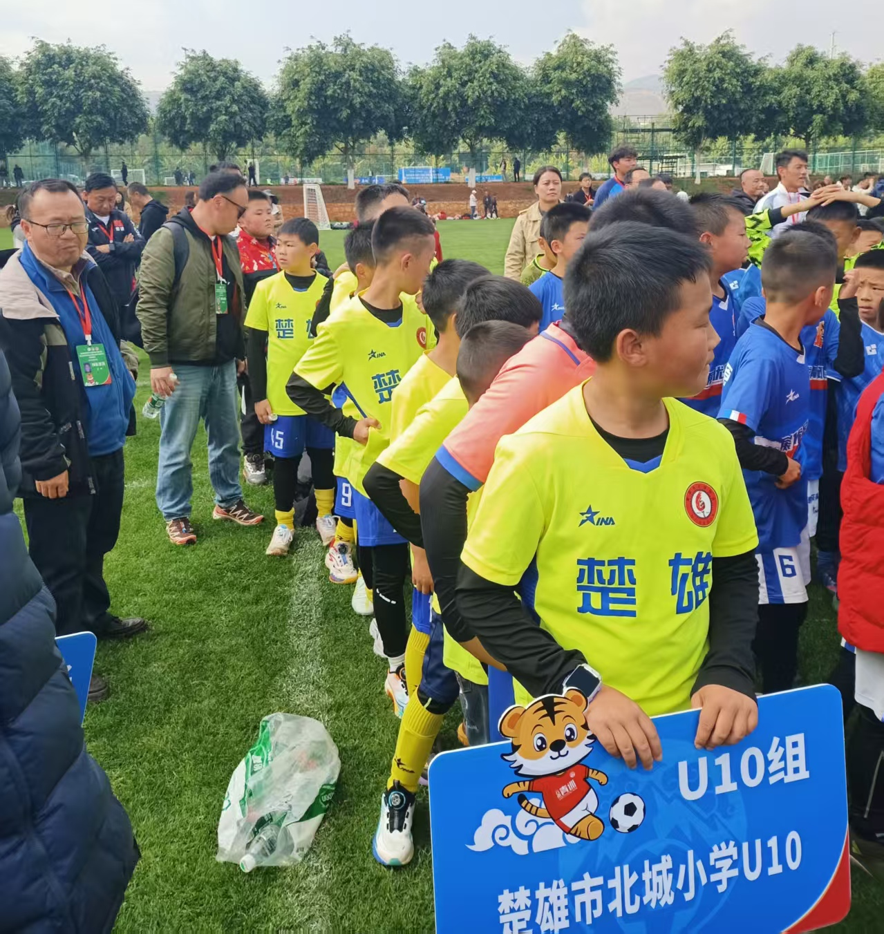 脚尖跃动热爱,汗水浇灌成长。近日,第四届中国青少年足球联赛(云南赛区)暨2025年云南省(第五届)青少年足球联赛总决赛开远赛区的绿茵场上,楚雄市北城小学U10足球队的小将们身着整齐队服,在舒兆星老师、杨国伟老师、包知捷教练的带领下,带着全校师生的期盼,奋勇拼搏用一场场热血赛事,书写了属于少年们的足球篇章。赛会现场,小将们手持专属标识牌,以昂扬姿态亮相省级赛场,成为绿茵场上一道亮眼的风景线。最终以2胜3平1负的成绩获得全省第十名。