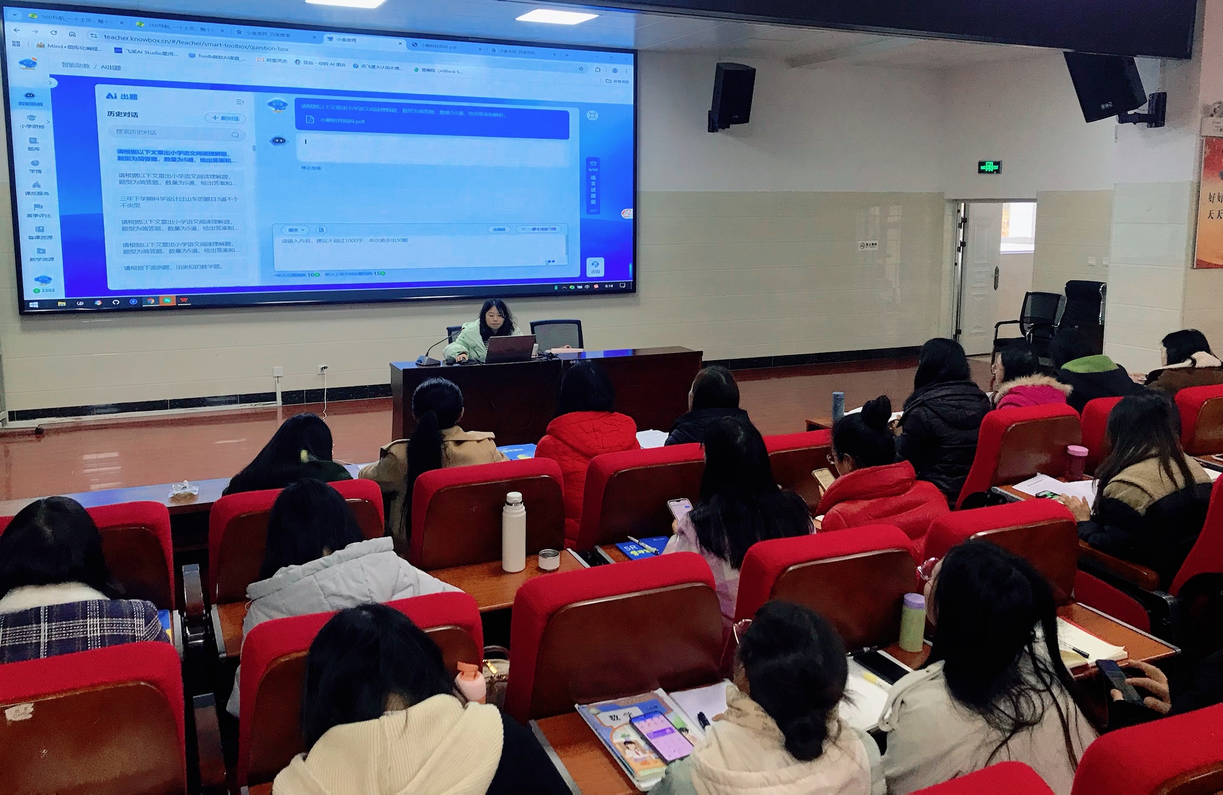 此次培训意义深远,既是落实“先学后教”理念、推动教学模式创新的重要举措,也为教师减负增效、精准施教提供了数字化支撑。培训内容紧扣教学实际,技术员围绕智能作业批改,演示了客观题自动批阅、主观题辅助批改的操作流程;针对AI教案撰写,讲解了基于学情生成个性化教案的方法;聚焦练习题设计,分享了如何根据教学目标快速筛选、组编分层习题。培训过程中,教师们认真聆听、积极互动,现场学习氛围浓厚。