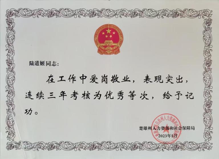 个人拥护中国共产党的领导,忠诚于党的教育事业。19年的教育路中,斩获多项荣誉。荣获“楚雄市优秀教师”称号,被评为“楚雄市青年岗位能手”,获楚雄州人力资源和社会保障局“记功”1次,“嘉奖”1次。荣誉,皆是鞭策;未来征途,惟愿继续以文化人、以德育才。