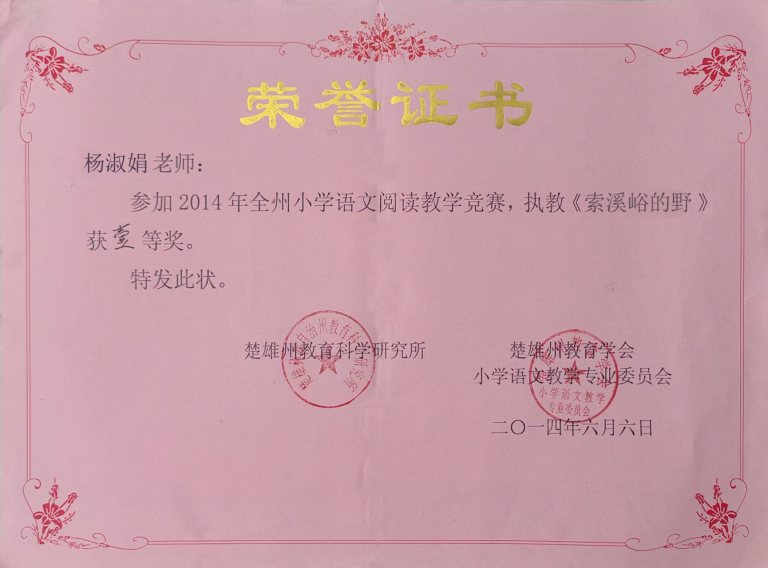 1.业务扎实。教学领域荣誉硕果累累,她斩获各级教学类奖项110项。参加云南省课堂专题展示交流“整本书阅读”教学竞赛、云南省民族共同体说课竞赛、中国小语协会组织的说课竞赛均获佳绩,参加州级、市级语文课堂教学竞赛均获一等奖,多次荣获校级教学竞赛一等奖。她以过硬教学基本功和扎实的教学风格,赢得广泛认可。