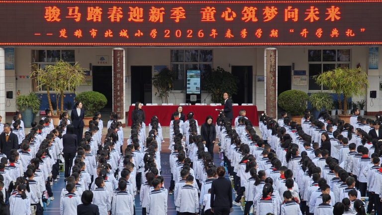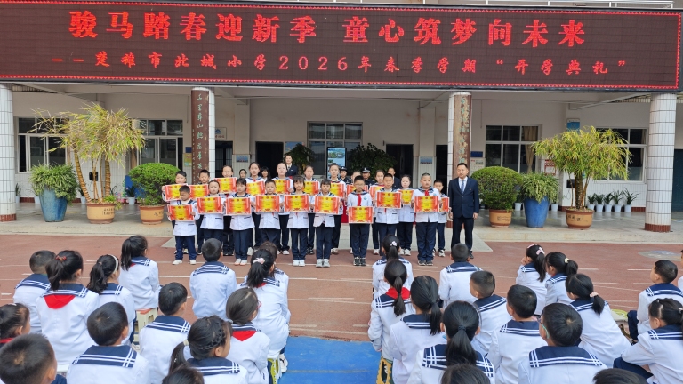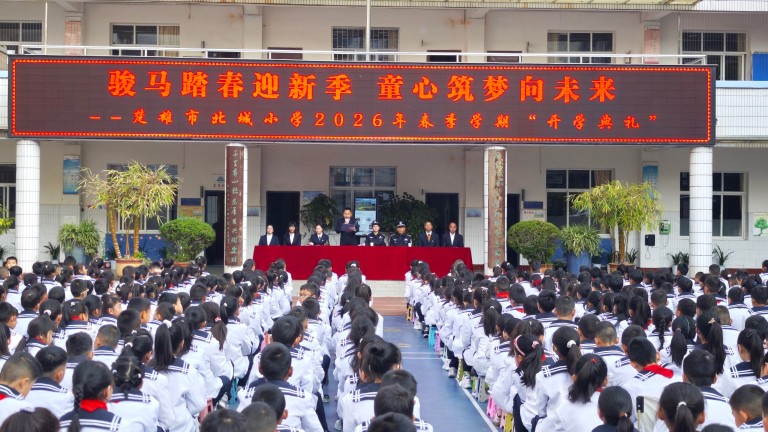 2026年3月5日,楚雄市北城小学迎来第一天正式开学日,上午8:30分,两校区同步举行2026年春季学期开学典礼。