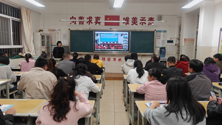 会议采用“校级视频会议+班级现场会议”相结合的形式进行。晚上7:30,校级家长会正式开始,由党总支书记何应明主持。党总支副书记、校长李兴华通过视频直播面向两校区家长发表讲话,就学校发展规划、教育教学理念及家校共育策略与家长们进行了深入交流。