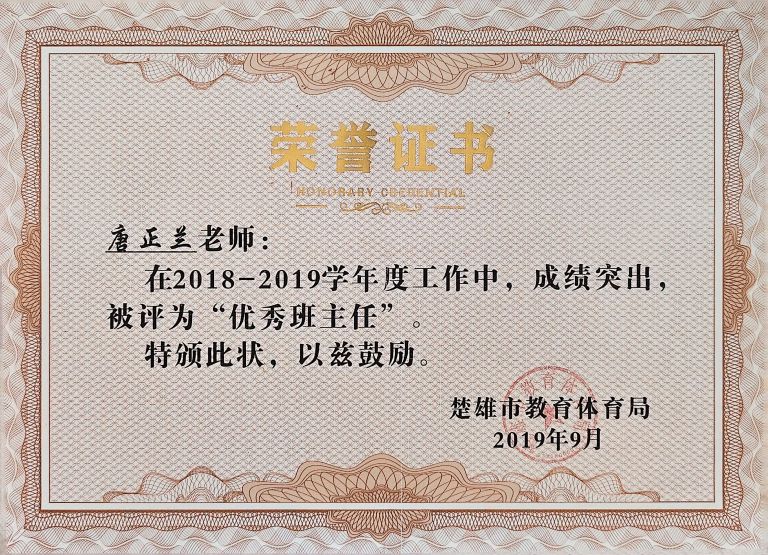 从教二十载,初心如磐,使命在肩,始终坚持正确的政治方向,忠诚党的教育事业,自觉加强政治理论学习,不断提升自身政治理论素养和思想道德水平。恪守师德底线,秉持高尚师德,严于律己,为人师表。她以高尚的人格魅力影响学生,用真诚的爱温暖心灵。曾获“州级优秀运动员”“市级优秀班主任”“送教下乡先进个人”“工作室优秀成员”,多次获评校级“优秀班主任”“优秀教师”“教学能手”“巾帼建功标兵”“优秀辅导员”。
