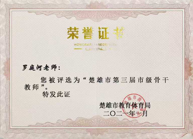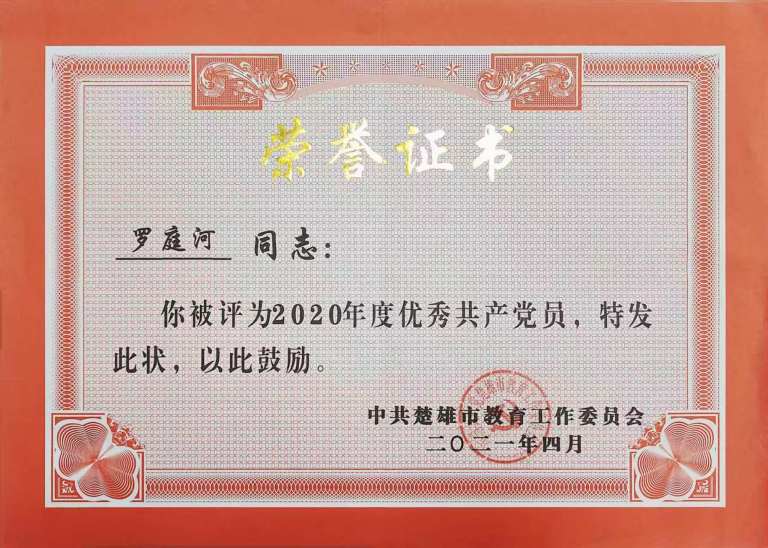 2.从教以来,凭借扎实的教学实绩与坚定的育人信念,先后获评楚雄市优秀教师、优秀共产党员,并获楚雄州人力资源和社会保障局“记功”表彰。他将持续以高标准严格要求自己,坚守教育初心,勇担育人使命,在三尺讲台书写党员教师的责任与担当。