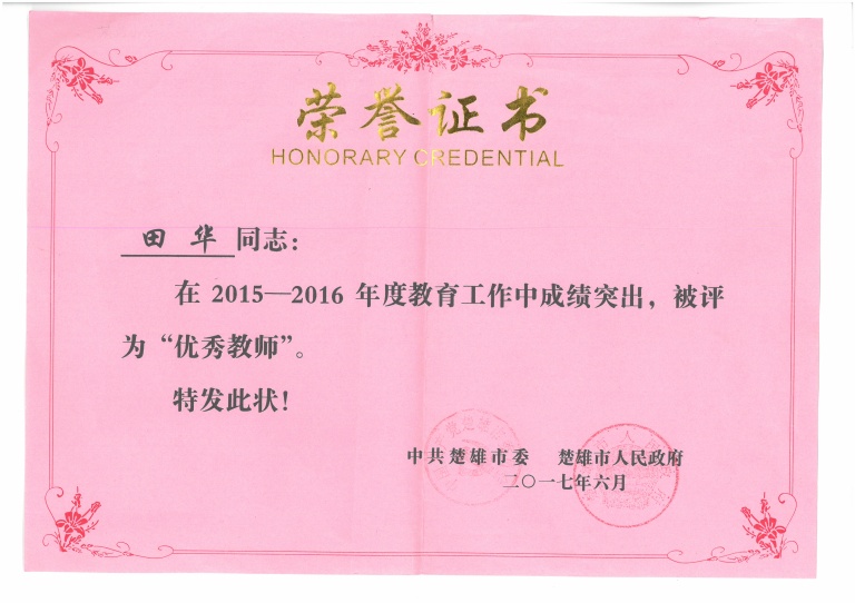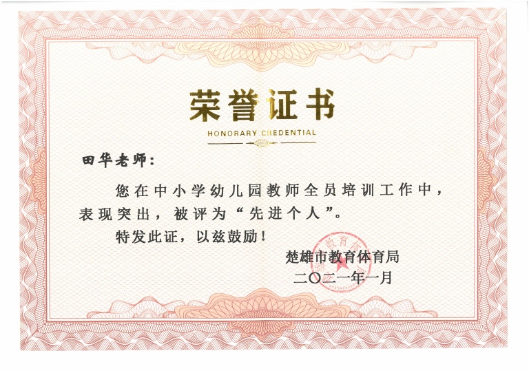 作为一名教育工作者,始终把坚定的政治信仰融入到日常教学中,把育人使命放在心中最高位置。心怀对教育事业的忠诚与热爱,坚守师德底线,涵养师者初心,以正确的价值观引导学生、以端正的言行影响学生。在平凡的课堂上,既教书更育人,既传知识更传品格,用兢兢业业的坚守诠释一名基层教师的责任与担当。工作中先后荣获“市优秀教师”“市级送教下乡优秀工作者”“市级全员培训先进个人”“云南省首届中小学幼儿园教师教学方法理论与实践大赛二等奖”选派到国家教育行政学院参加“西部乡村中小学校长”培训学习。每一份表彰都是鼓励,更是前行的动力,将继续以赤诚之心育人,以实干担当履职,不负讲台,不负时代,让教育有温度、有方向、有力量。