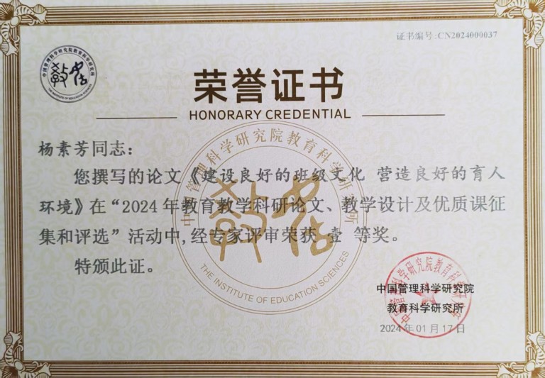 在班级管理中讲求方法、尊重差异,注重培养学生的集体荣誉感和自我管理能力,多次被评为“文明班级”“平安班级”,一次获评红领巾“一星章”中队,所带班级都能形成积极向上、团结守纪的优良班风。她尤其关注留守儿童和特殊学生群体,经常利用课余时间家访,用关怀温暖每一个孩子的心灵。她善于抓住教育契机,通过集体活动感化后进生,让每一个孩子都能在集体中找到归属感和价值感。