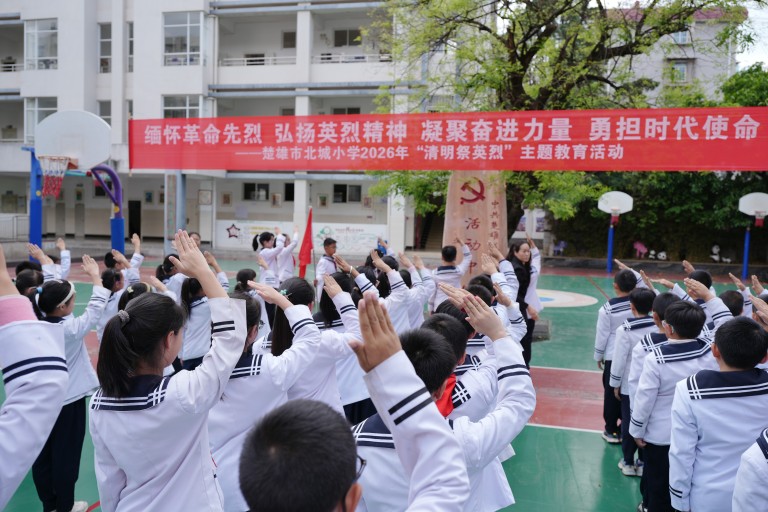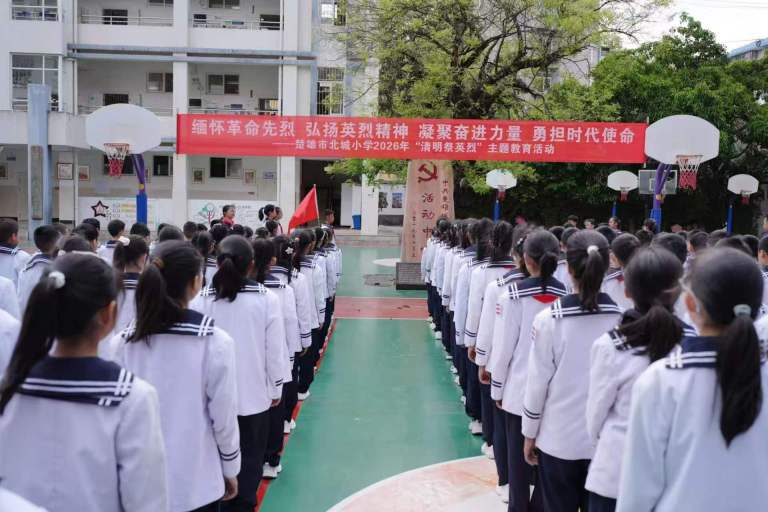 为深入贯彻党的教育方针,弘扬革命传统,传承红色基因,2026年4月3日,楚雄市北城小学校本部支部以“缅怀革命先烈,弘扬英烈精神,凝聚奋进力量,勇担时代使命”暨四月“党建带队建红色基因永流传”为主题,组织全体党员、团员教师和五(5)中队、四(1)中队、四(4)中队,在学校爱国主义教育基地开展“清明祭英烈”主题教育实践活动。主题队会利用快板表演、演讲,党员教师红色宣讲等形式开展爱党爱国教育,旨在引导广大少先队员树立正确的世界观、人生观和价值观,从小培养爱国爱党情怀。