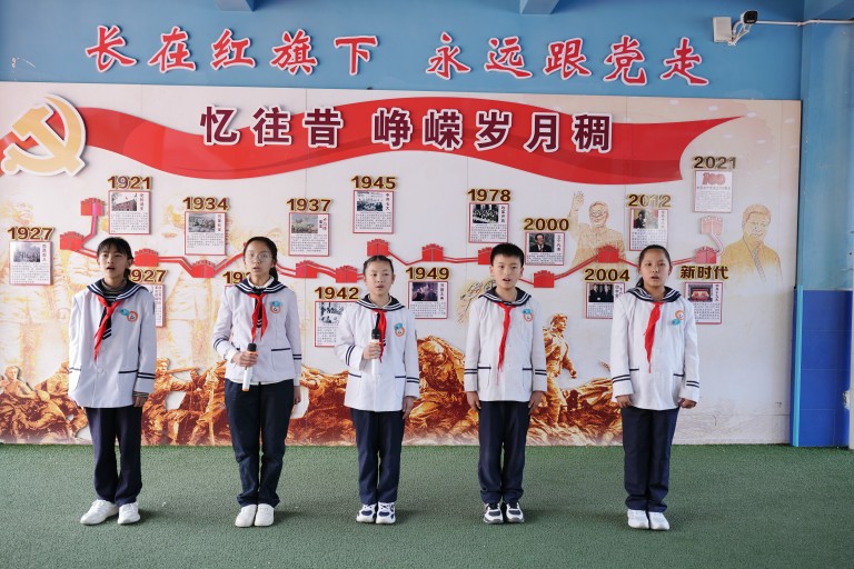本次活动,全体党员、团员教师和四(1)中队、四(4)中队观摩了五(5)中队的“缅怀革命先烈,弘扬英烈精神,凝聚奋进力量,勇担时代使命”主题队会。少先队员们在中队长的主持下,出旗、唱队歌,在庄严肃穆的仪式中感受到了新时代少先队员的光荣和使命,在小主持人精彩的讲解中,大家重温中国共产党成立至今,经历的风风雨雨,回顾光辉历史,倍感无上荣光。