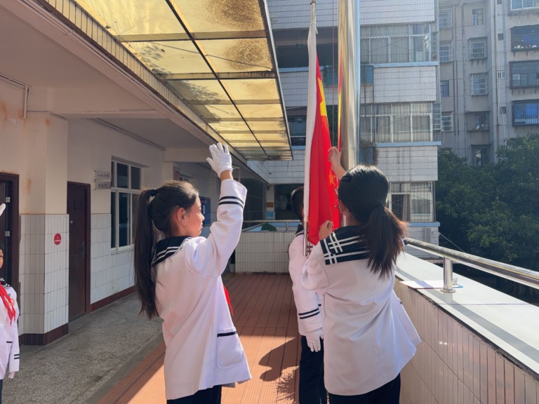 新的一周已经开始,让我们把这份自豪变成实实在在的行动:课堂上,认真听讲、积极思考,用知识武装自己的头脑;课间里,文明游戏、互帮互助,让校园充满温暖与欢笑;生活中,爱护环境、勤俭节约,从身边的小事做起;永远热爱祖国、尊敬师长,努力成为有理想、有品德、爱学习的好少年。我们是祖国的未来,是明天的希望。让我们从今天做起,从现在做起,用努力和汗水为国旗添彩,为学校争光!