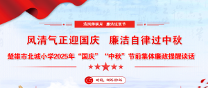风清气正迎国庆 廉洁自律过中秋——楚雄市北城小学召开2025年“国庆”“中秋”节前集体廉政提醒谈话会